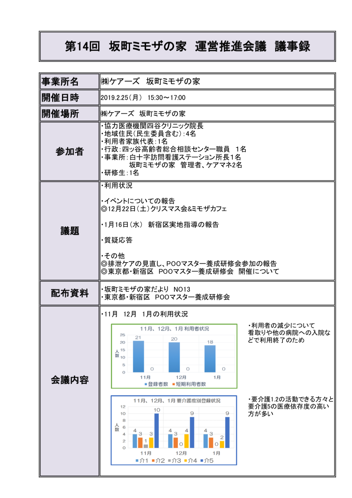【第14回 坂町ミモザの家 運営推進会議 議事録】